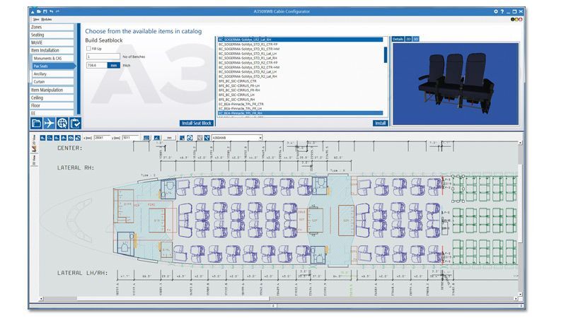 The A350 XWB configurator ties in with Airbus’s new customization concept of offering aircraft buyers an extensive catalog of modular solutions to achieve a significant reduction of lead times. Key assets in this respect are the software’s intuitive, highly visual user interface, which facilitates the selection of suitable packages from the catalog; complex compatibility rules, which ensure that only valid configurations are considered; and real-time visualization, which makes it easier for the customer to examine the currently selected options.